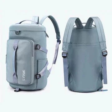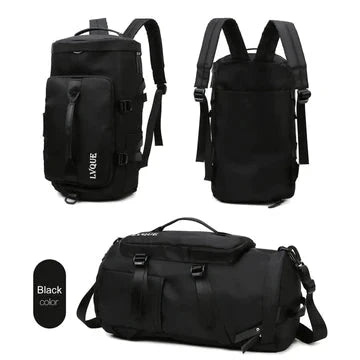 Large capacity travel backpack. It can hold a lot of things and can carry a laptop in the laptop compartment.